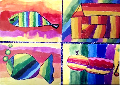 การสร้างภาพโทนสีร้อน-สีเย็น ของเด็กอายุไม่ต่ำกว่า 5 ขวบนั้น เมื่อผลงานออกมาแล้วไม่คิดว่าเด็กๆ จะทำได้สมบูรณ์การไล่โทนสีทำได้ 7 ระยะสำหรับเด็กเล็กๆ แต่ต้องมีตัวอย่างประกอบให้ดูสักหน่อย หรือจัดเรียงสีชอล์กตามตัวอย่างสี